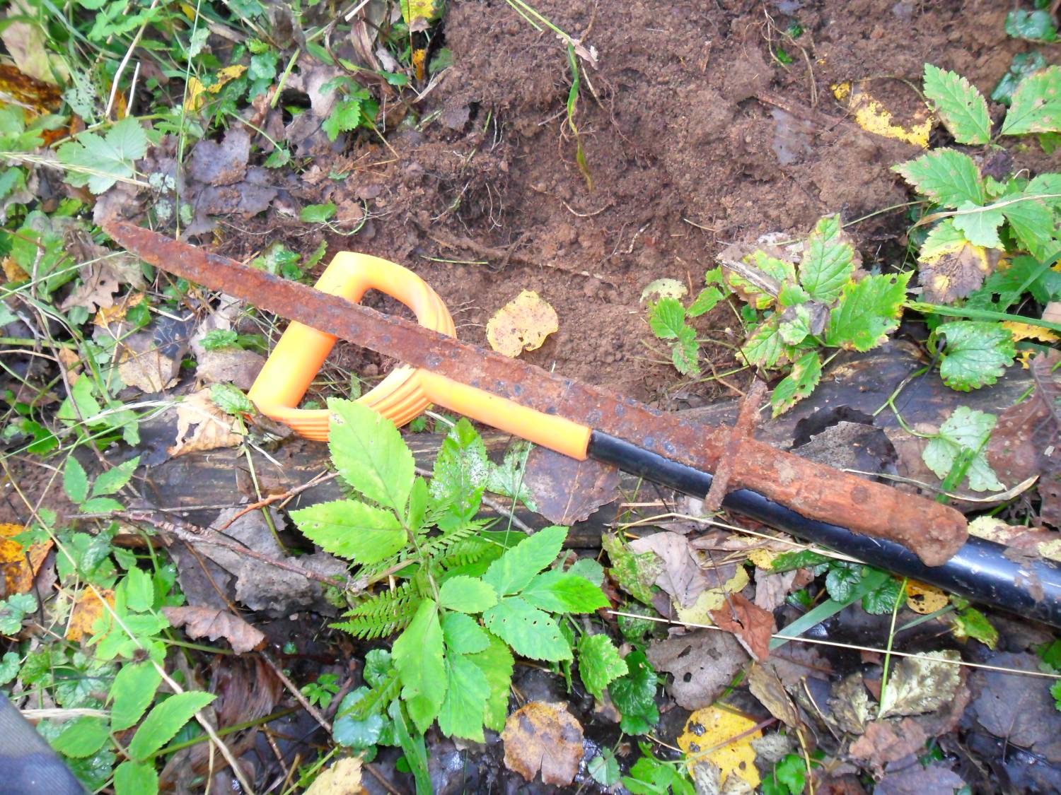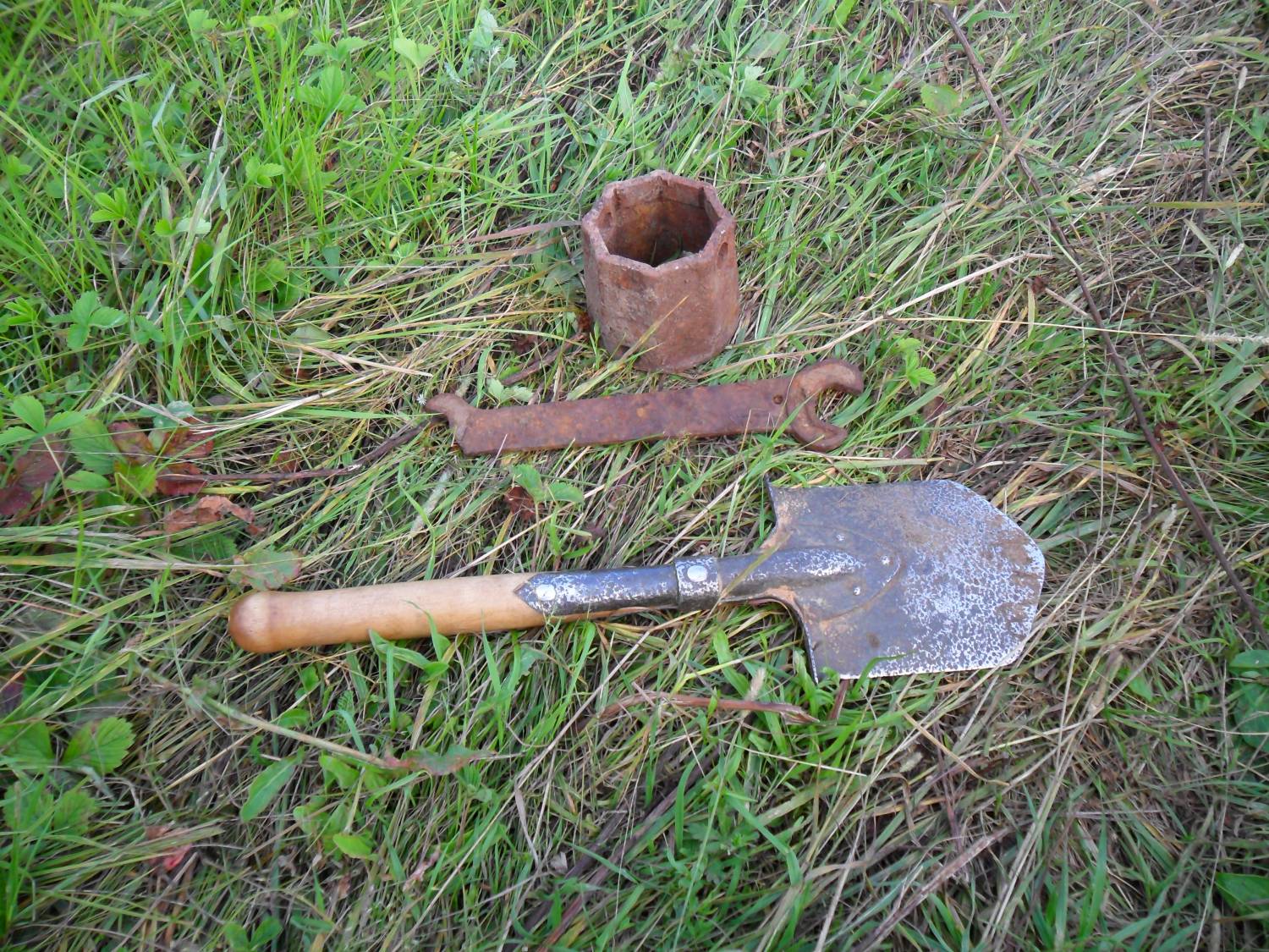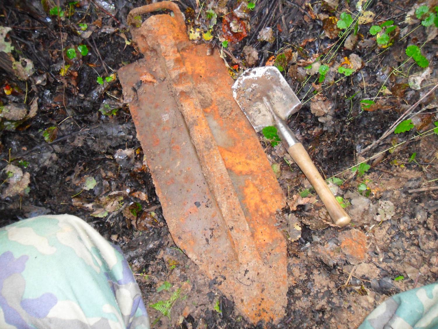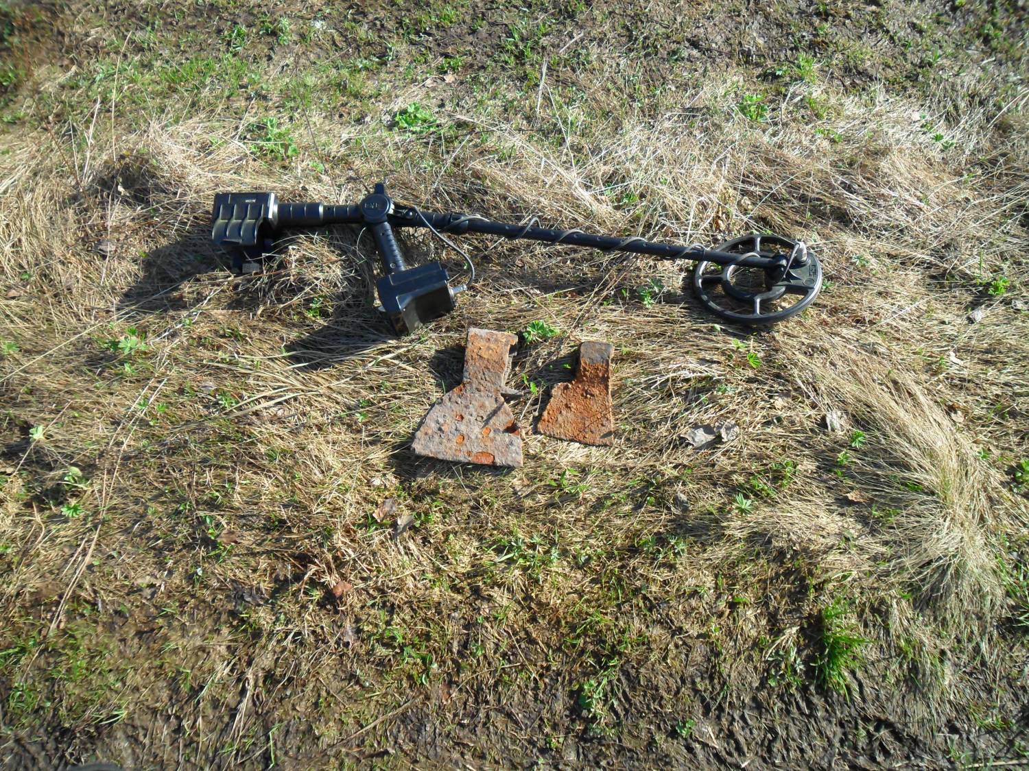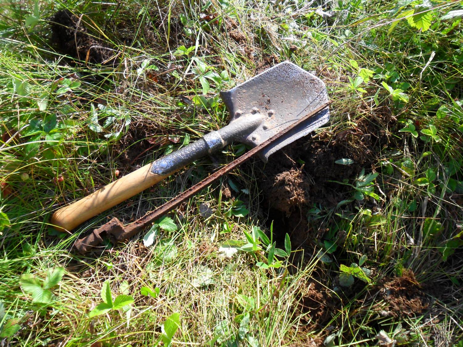 | случился со мной такой казус.приборчик звякнул хорошо,стал копать.не потдаётся земля,корней много.ну лапата фискарс мощная,подналёг на неё и ....раздался звук лопнувшего металла! достаю я на свет австрийский штык!переломан ближе к ручке. вот так.