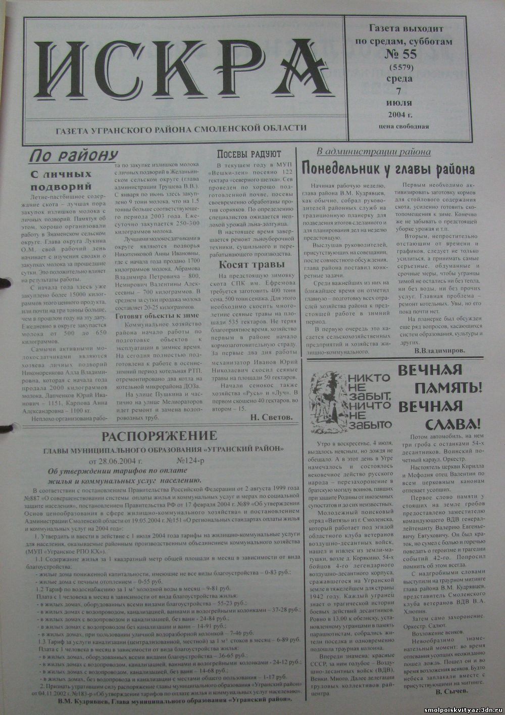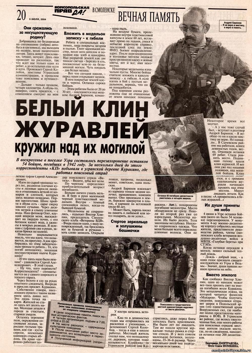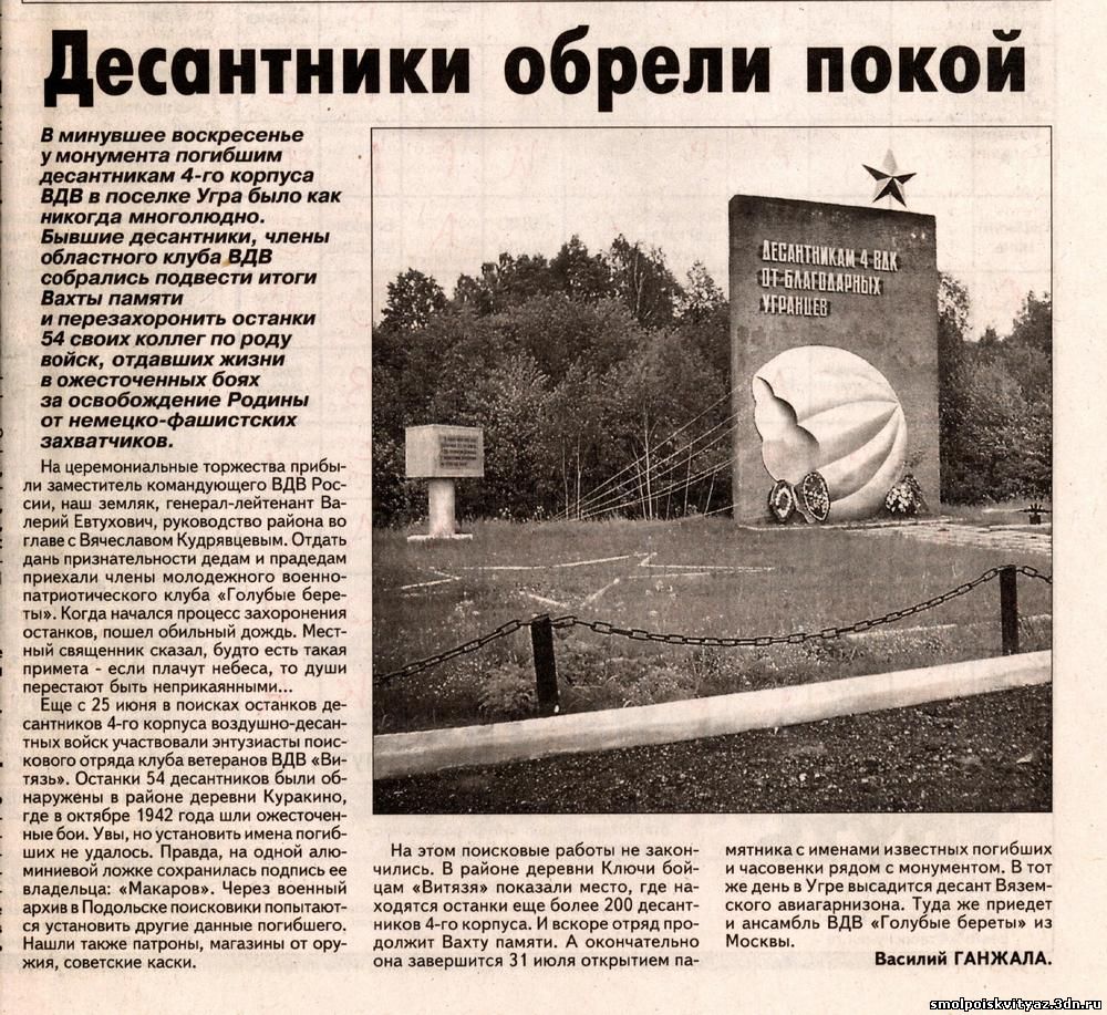 Очередной выезд отряда для проведения поисковых работ состоялся 25 июня 2004 года.Отряд выехал на территорию Угранского района Смоленской области.Это была первая поездка отряда в Угранский район,первая совместная работа с Смоленским клубом ветеранов ВДВ,первая встреча с жителями района.