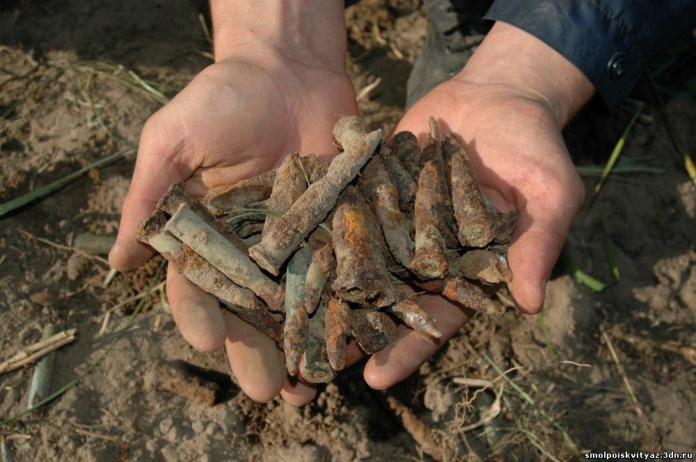 Докопав в центре,где предположительно должна быть кабина пилота,до самого дна воронок мы наткнулись на металлический предмет уходящий глубоко в дно воронки,приложив немало усилий нам удалось вытащить этот предмет, это был 12мм пулемёт.