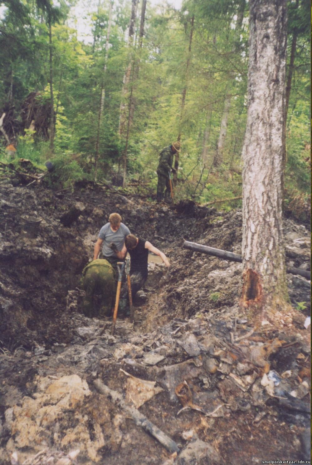Мы начали раскоп между деревьями и уже на глубине 30-40см обнаружили останки и начали производить подъём.