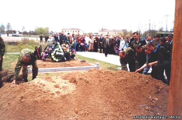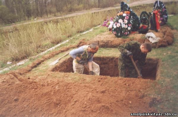 После того как могила была подготовлена,мы уложили останки,всё было подготовлено.