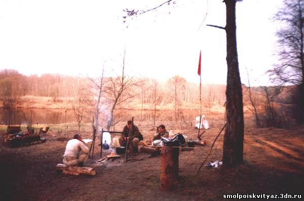 Проведение поисковых работ мы начали с р-на д. Лепехи. Лагерь отряда был расположен на берегу р.Угра
