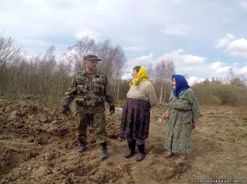И буквально сразу удача, местная жительница нам сразу сообщает о захоронении недалеко от её дома, показывает рукой и говорит :" Вон там, возле пруда",