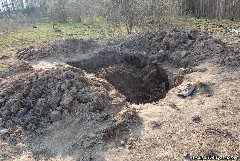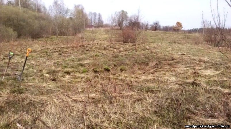 после нескольких часов работы результата нет, опять идём к бабушке, опять расспрашиваем, подошла её соседка, начали вспоминать вместе, вспомнили, захоронение на поле, опять берём инструмент и идём на поле. После пары часов работы щупом, щуп ушёл по самую рукоятку и упёрся во что-то твёрдое , явно кость, звука удара не слышно, но по отдаче в рукоятку щупа понятно, цель рядом.