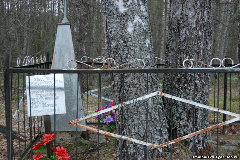 " Здесь покоятся партизаны погибшие 21 мая 1942г.