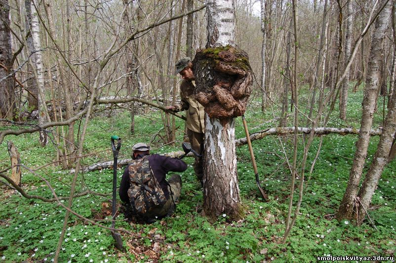 Развернув лагерь мы приступили к разведке, вернее проверке полученной информации, в этот раз мы решили воспользоваться информацией полученной в Смоленском архиве, и вот мы выдвинулись в район бывшей деревни Андрияки. Погода была хорошая,земля высыхала, но почва ещё была очень пропитана водой, всюду были разливы рек, поэтому дорога была не из лёгких и нам периодически приходилось преодолевать всевозможные преграды.