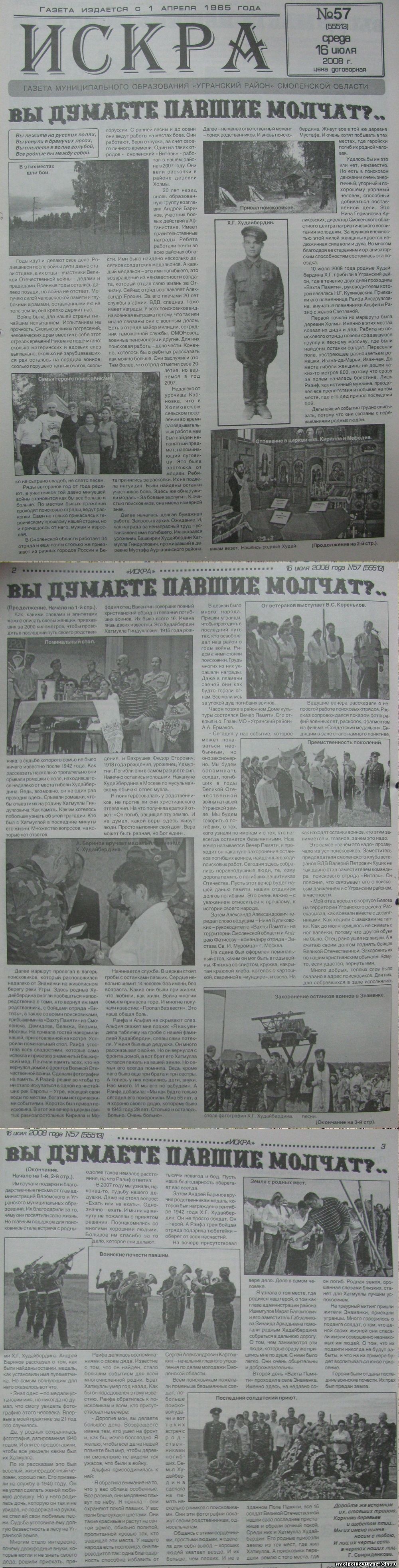 Статья местной Угранской газеты.