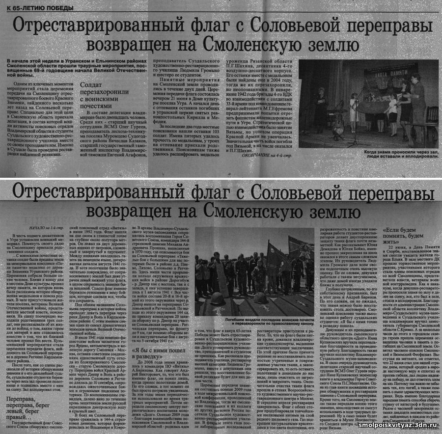 ОТРЕСТАВРИРОВАННЫЙ ФЛАГ ВЕРНУЛСЯ НА СМОЛЕНСКУЮ ЗЕМЛЮ