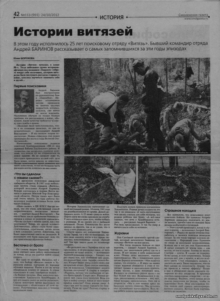 Статьи СМИ об поисковом отряде "ВИТЯЗЬ"